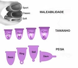 O Copo Menstrual Me Luna é mais vendido do mercado porque é o único com 4 tamanhos, 4 pegas, 2 modelos, 3 maleabilidades e muitas cores!